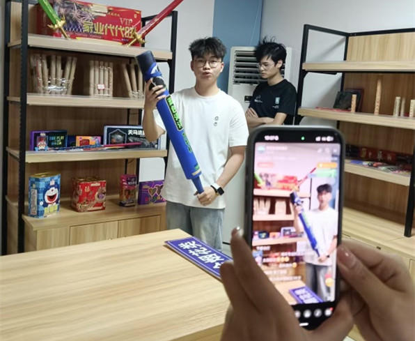 直播中,同学们系统展示了九大类烟花爆竹产品,详细讲解了各类产品的结构特点、燃放效果、使用场景等。并在室外空旷场地进行了组合烟花产品的安全燃放操作,强调“30米以上安全观看距离”“风向判断”“儿童监护”等要点,并针对“哑炮处理”“火星溅射”等突发情况示范灭火等应急处置措施。